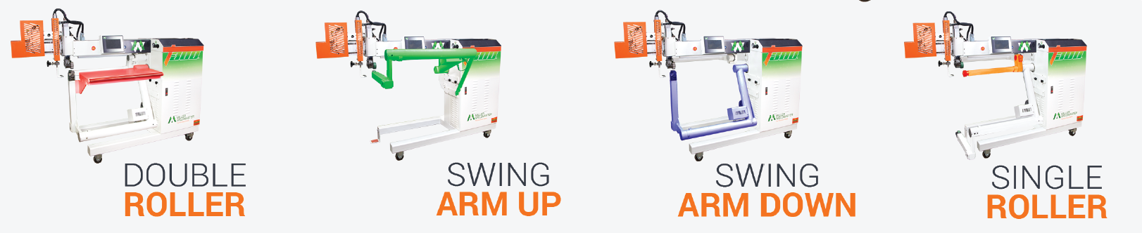 Urządzenie może być skonfigurowane z różnymi typami wałków i ramion, które ułatwiają zgrzewanie nietypowych kształtów typu tuby, wiadra, filtry itp.